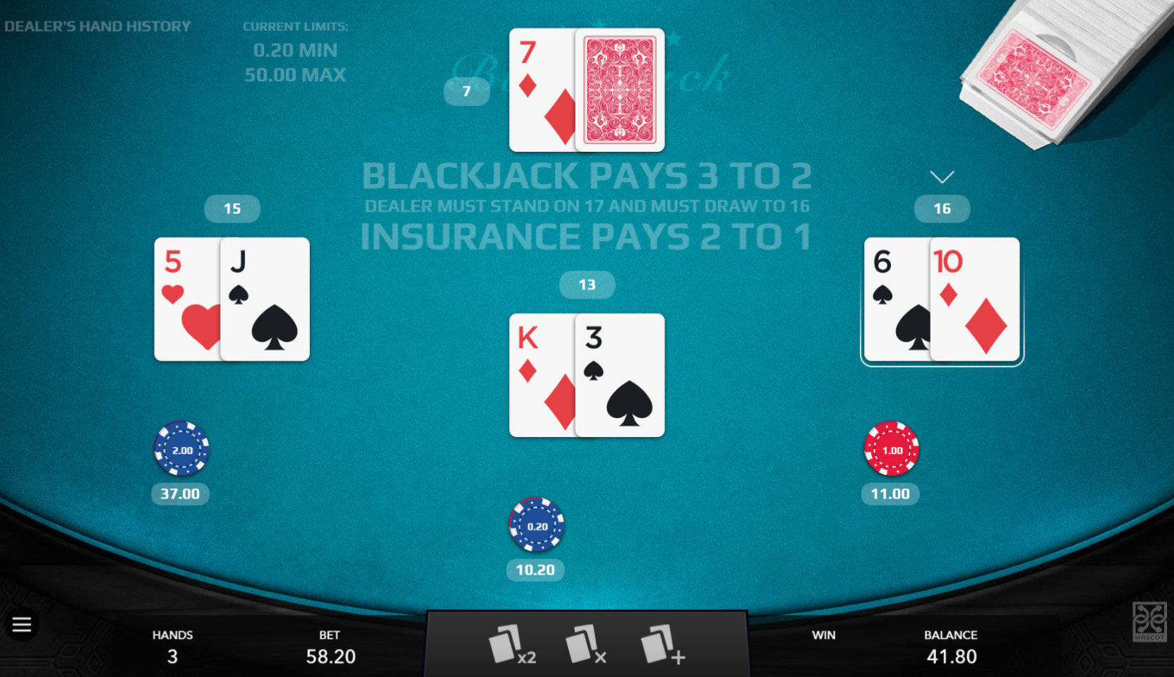 - Minimum and Maximum Bet – Black Jack has a minimum bet of 0.20 and 50.00 as a maximum bet.