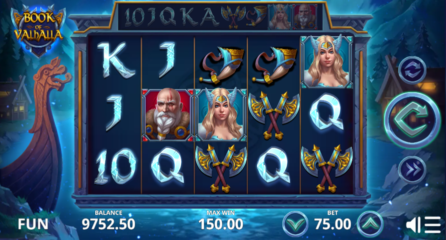 - Play Mode – Book of Valhalla is a 5x3 reel video slot game with Wild Book and Super Wild Book symbols, Free Spins, and Bonus Spins.