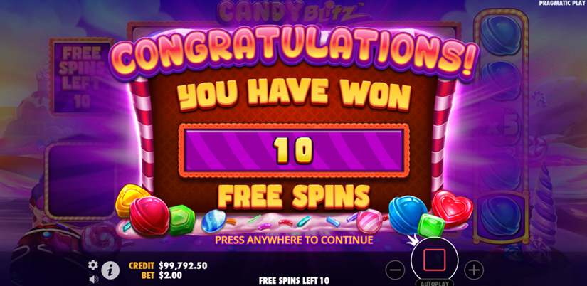 The rhythmic sound effects will dip you into the sweet treats dripping off the delicious, sweet-covered scenery in Candy Blitz with scatters that start the free spins and additional free spins. The maximum multiplier of up to x10 000 will feed your sweet tooth wins with cluster pay lines that make the winning even sweeter. To blitz yourself into the free spin zone, use the buy free spins button to satisfy your sweet free spin rounds.