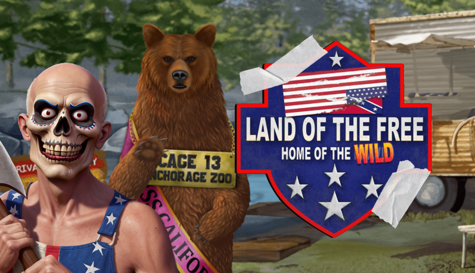 Land Of The Free Main Features : Reel Area, xBet, Conveyor Belt, Bottles, Protein Powder Keg, Benzo Bear, Mr Split & Chainsaw, Rubber Ducks, Titan Spin (Idiot Spin in the Bonus Buy), Tsunami Spins, Submerged Spins, Pearly Gates, and NoLimit Bonus Buy.