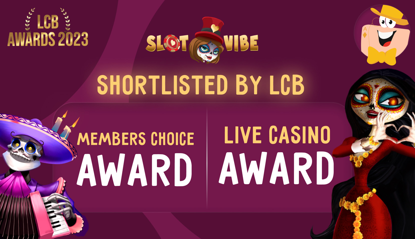 KaBoom!! Hooray! Hola SlotVibers! SlotVibe Casino is shortlisted for the LCB Awards in the Live Dealer Games and Members Choice Category! Please join us at the Live Streaming Event on the 22nd of January, 2024. Everyone at SlotVibe Casino is so excited to start 2024 with this fantastic accolade from LCB Awards. Mreow! Gruff! Yeah!