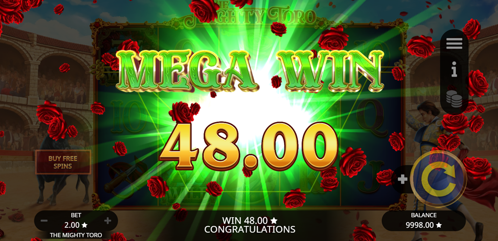 - Matador graphics – You will fall into the rose-scented matador graphics of The Mighty Toro with its lively sound effects and hyper-realistic animations, with bulls, matadors and lovely ladies waiting to catch the roses.