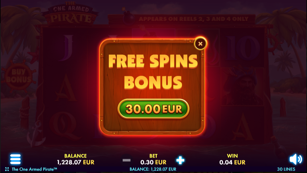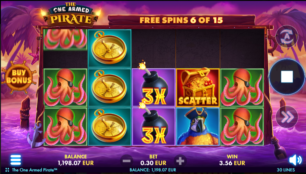 • Buy-Bonus feature - buy a set of Free Spins for 100x times the value of your bet. When you do so, Scatter Symbols - chest of coins - will always land on the reels to start the Free Spins mode.