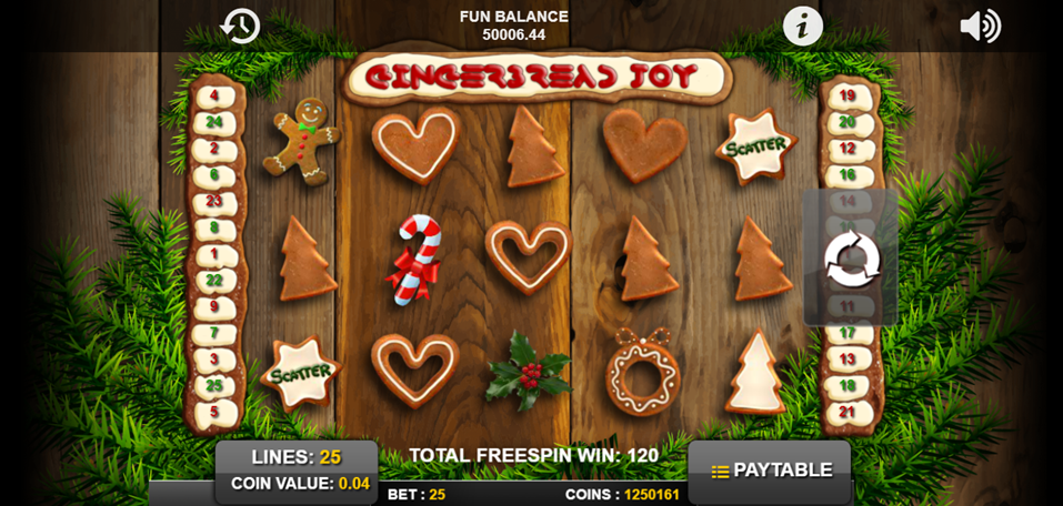 - Minimum and maximum bet - Gingerbread Joy has a minimum bet of 0.01 and a maximum bet of 62.50.