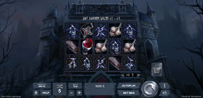 Book Of Vampires has Vampire Wilds, Shatter mode with upgrading paylines, bloody free spins with a special expanding feature, and a Buy Bonus Feature.