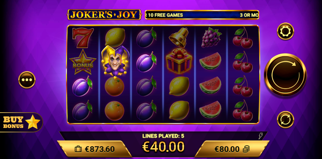 - Minimum and maximum bet - Joker’s Joy has a minimum bet of 0.80 and 80.00 as a maximum bet.