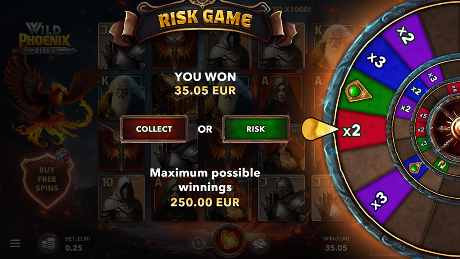 - Play Mode - Wild Phoenix Rises is a 5x4 reel video slot game with 25 paylines with a Griffin Wild and Scatter symbol, Risk and Buy Features, Free Spins Accumulation Scale, and Free Spins with Multipliers.