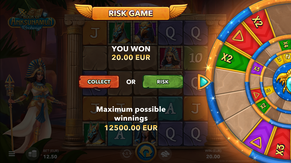 The Buy Free Spins has me rocking the wins, and the Risk feature, with its Wheel of Fortune, is ready to spin when you win. With the Rockways and the Rockfall features, the Mystery symbol and the Risk n Buy features, you will be immersed in the Book of Anksunamun: Rockways. Gruff!