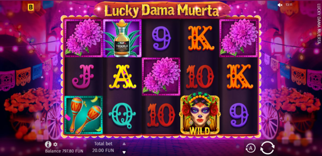 With your party gear and festive vibes, you can spin into party mode, where the tequila drops together with maracas and guitars. Flowers pop out of every reel, and the ornate letters slide smoothly over the reels. You know the Wilds will multiply when Lucky Dama Muerta gives you a wink. When the Sugar Skulls collect, you can be assured that spinning will lead to winning.