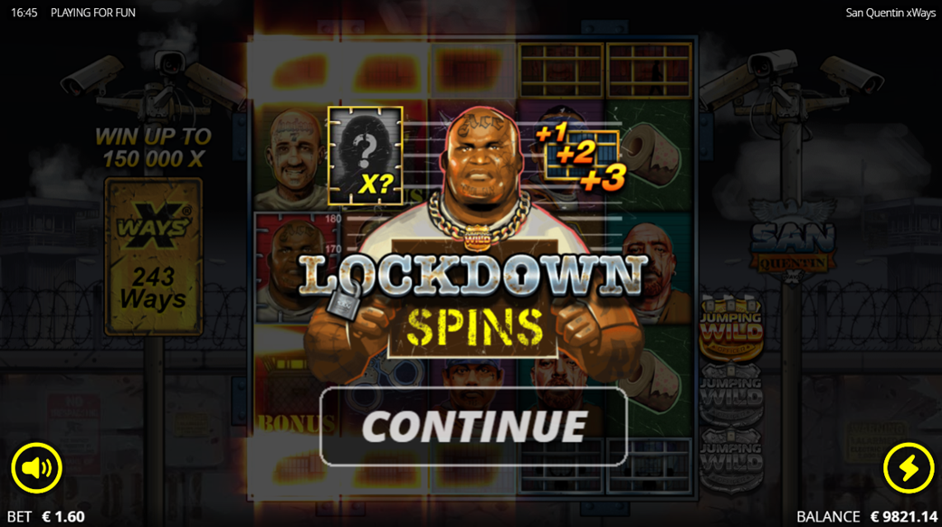 - Play Mode - San Quentin is a 5x3 reel video slot game with Split and Jumping Wilds, Guardhouse Bonus symbol, Enhancer Cells, Bonus Triggers, Lockdown Spins, Psycho Manhunt, and NoLimit Bonus Buy.
