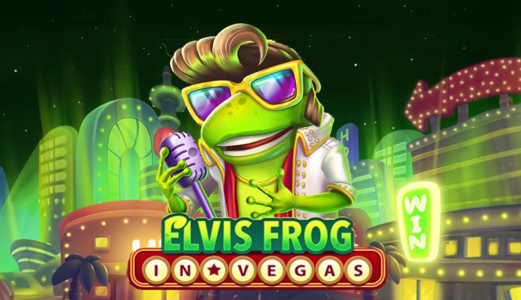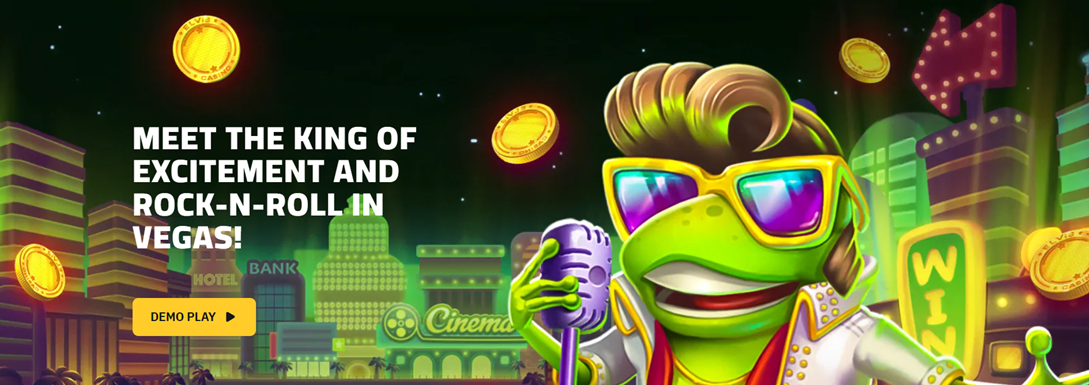 - RockStar graphics – The foot-tapping rhythms and rockstar graphics in Elvis Frog in Vegas will make your eyes rock with the guitars, gorgeous lady frogs, and, of course, the King himself, jiving with big rewards for you.