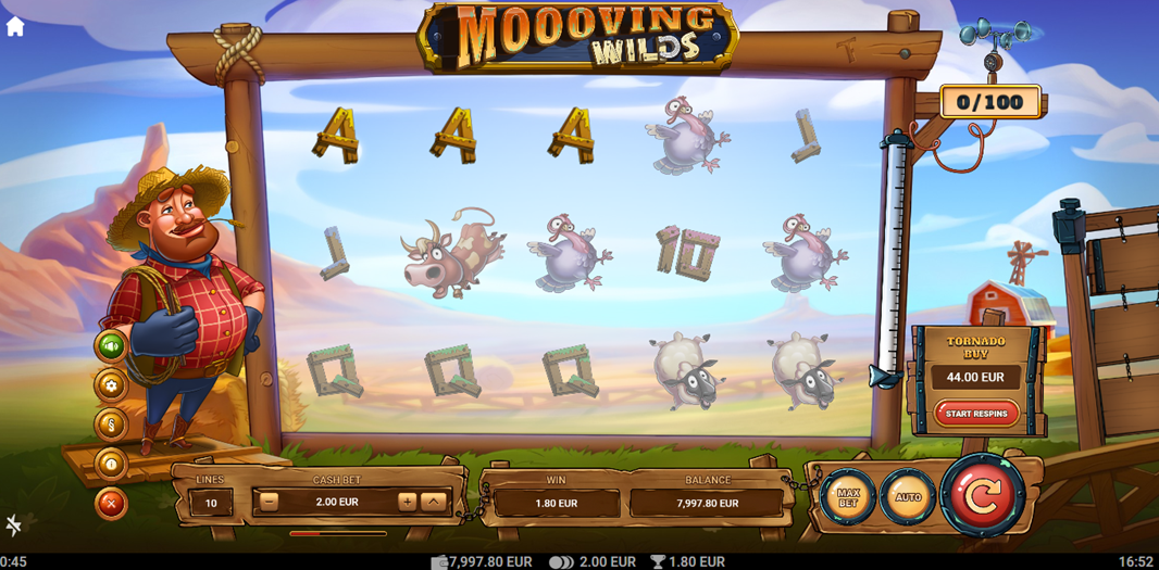 - Minimum and maximum bet - Moooving Wilds has a minimum bet of 0.10 for mild weather and 100.00 as a maximum bet for wild weather.